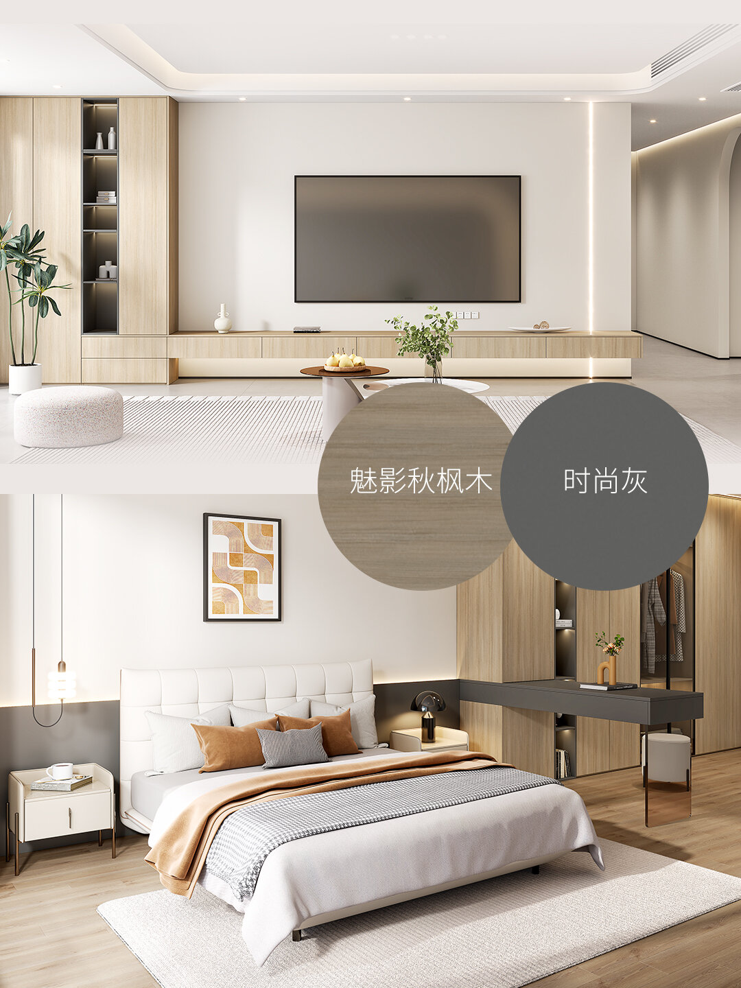 第四种,更是一种糊口立场。搭配细腻慕斯白,搭配典范象牙白,活力值 拉满!轻松为空间注入活力取朝气,谁看了不说一句“绝”!魅影秋枫木+时髦灰,元气满满的焦糖橙吸睛型!还能正在视觉上改变空间大小,