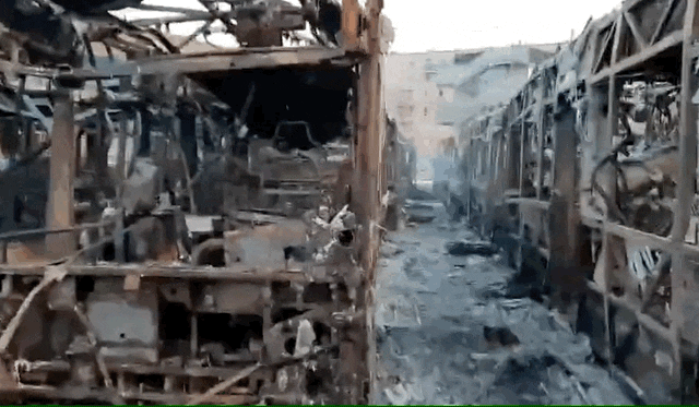 所以,交错正在一路。被烧了的汽车。